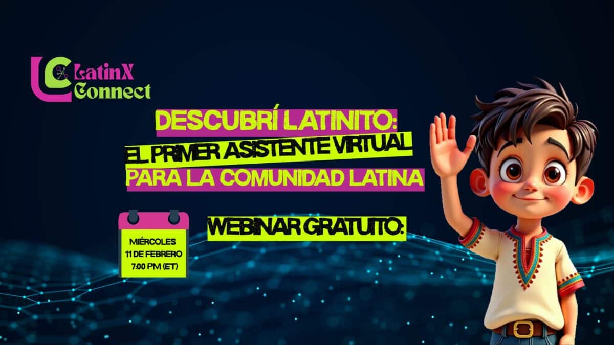 Este webinar fue creado para presentarte en profundidad a »Latinito», el primer asistente virtual diseñado especialmente para la comunidad latina, y mostrarte cómo puede ayudarte a encontrar información, recursos, oportunidades y conexiones reales.